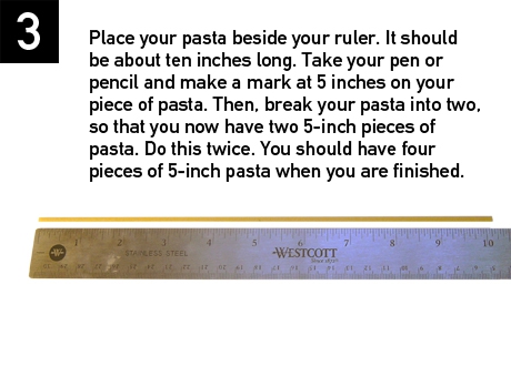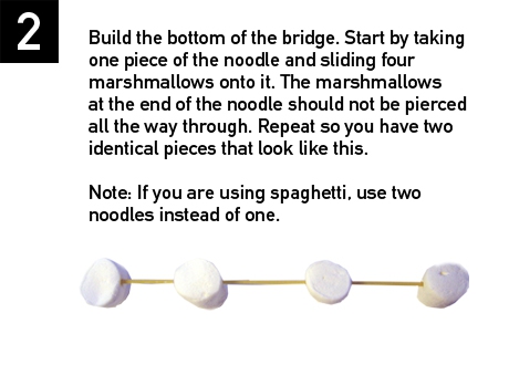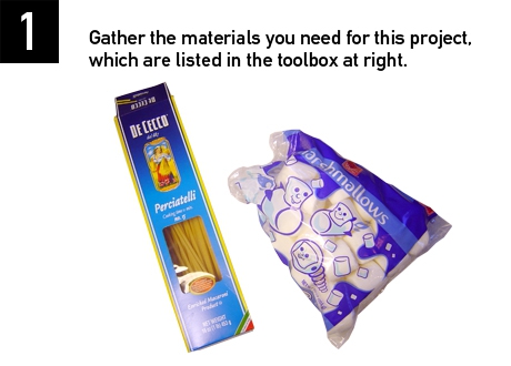 Gather these tools and build your own toolbox. For this project, you will need one package of pasta and one package of marshmallows.